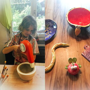 Ton ist eines der ältesten Gestaltungsmaterialien der Menschheitsgeschichte. Beim Arbeiten mit Ton vereinigen sich die vier Elemente Erde, Wasser, Luft und Feuer.